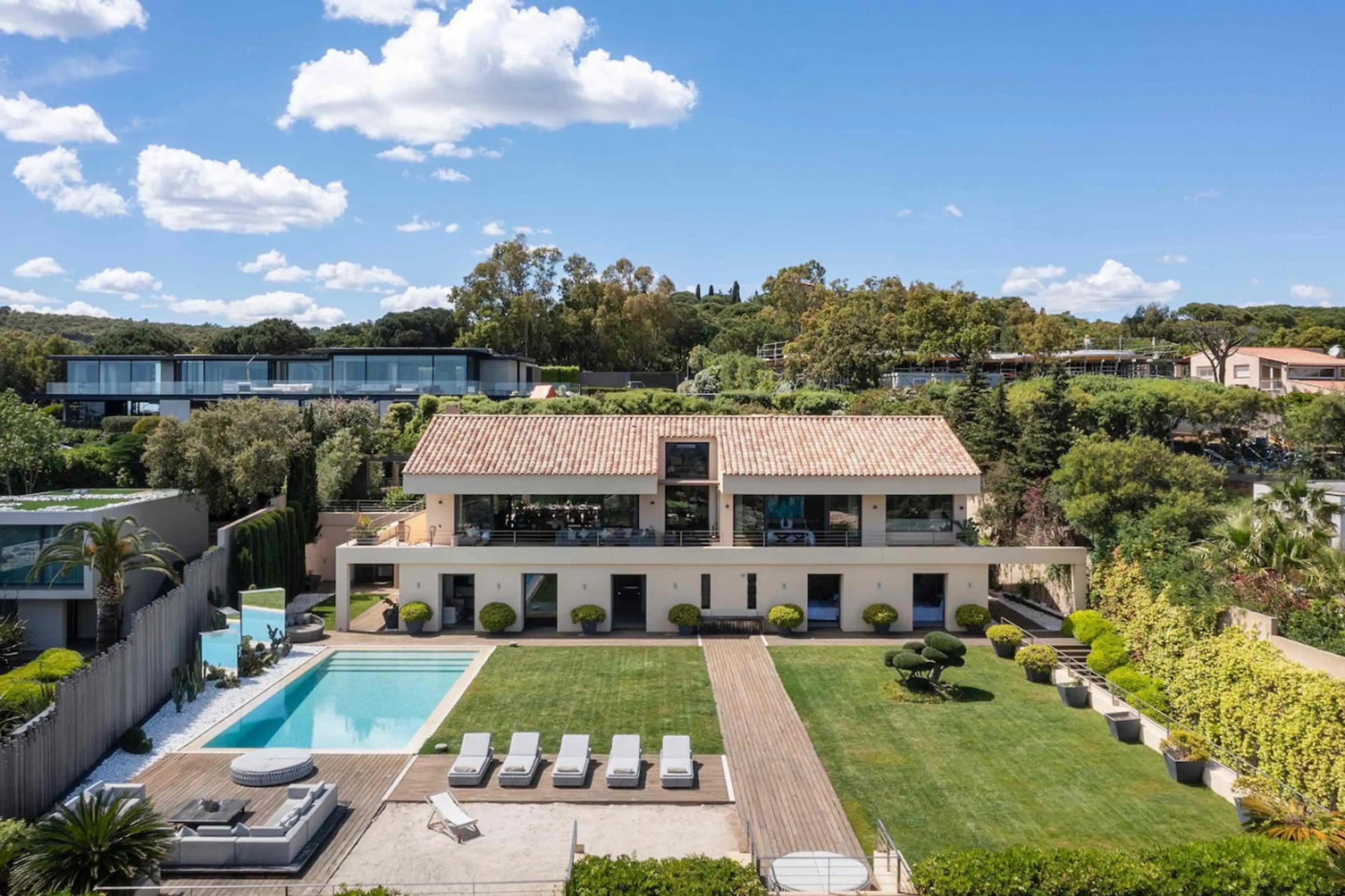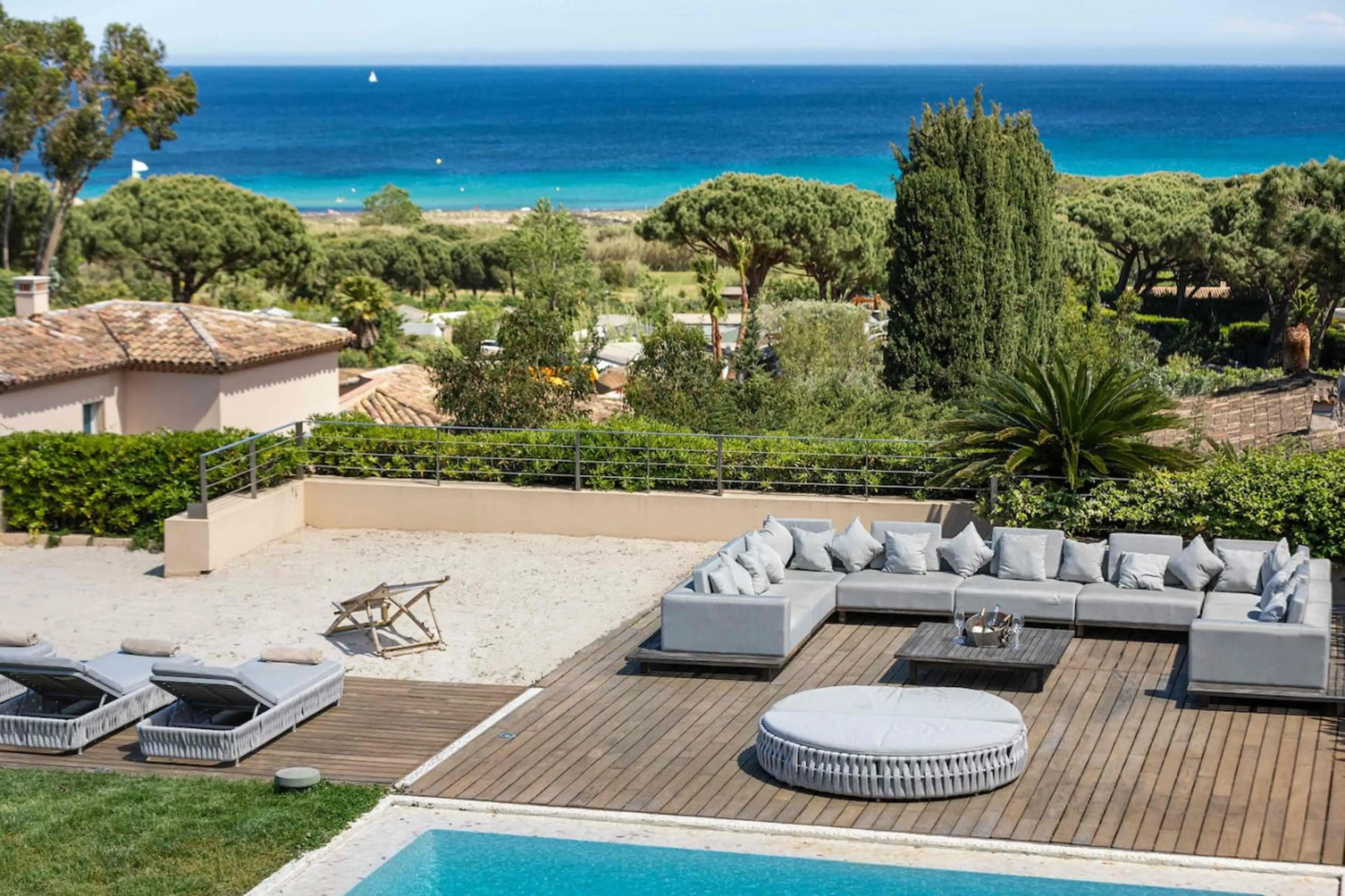 Located on one of the most exceptional plots in the Saint Tropez/Ramatuelle area, enjoying spectacular 180° views across the ocean, and just a three minute walk from the beach and Club 55. The house boasts three master bedrooms, two additional large guest suites, and a floor just for children, with...